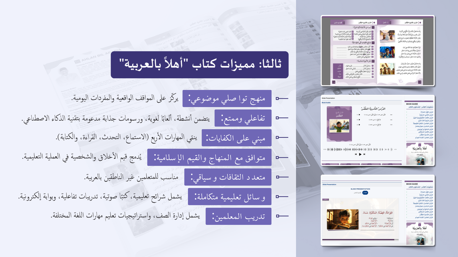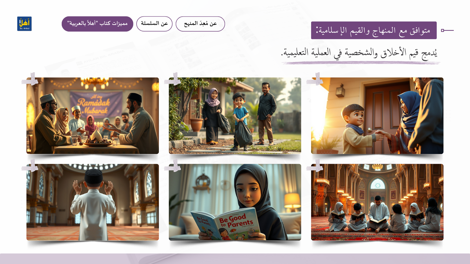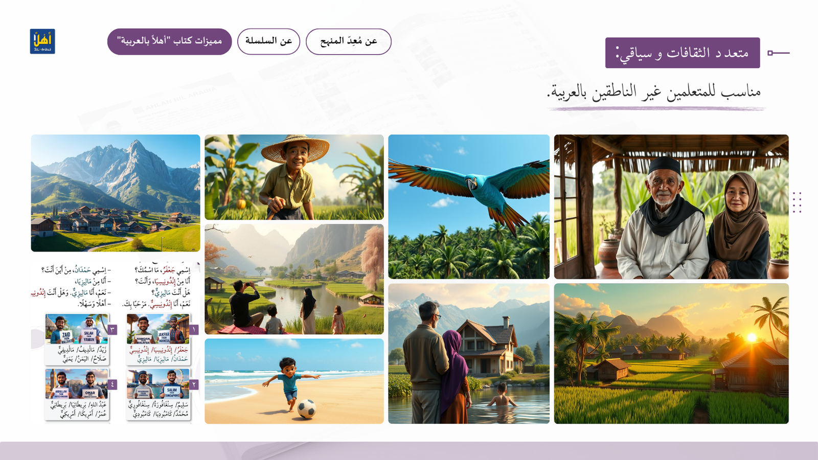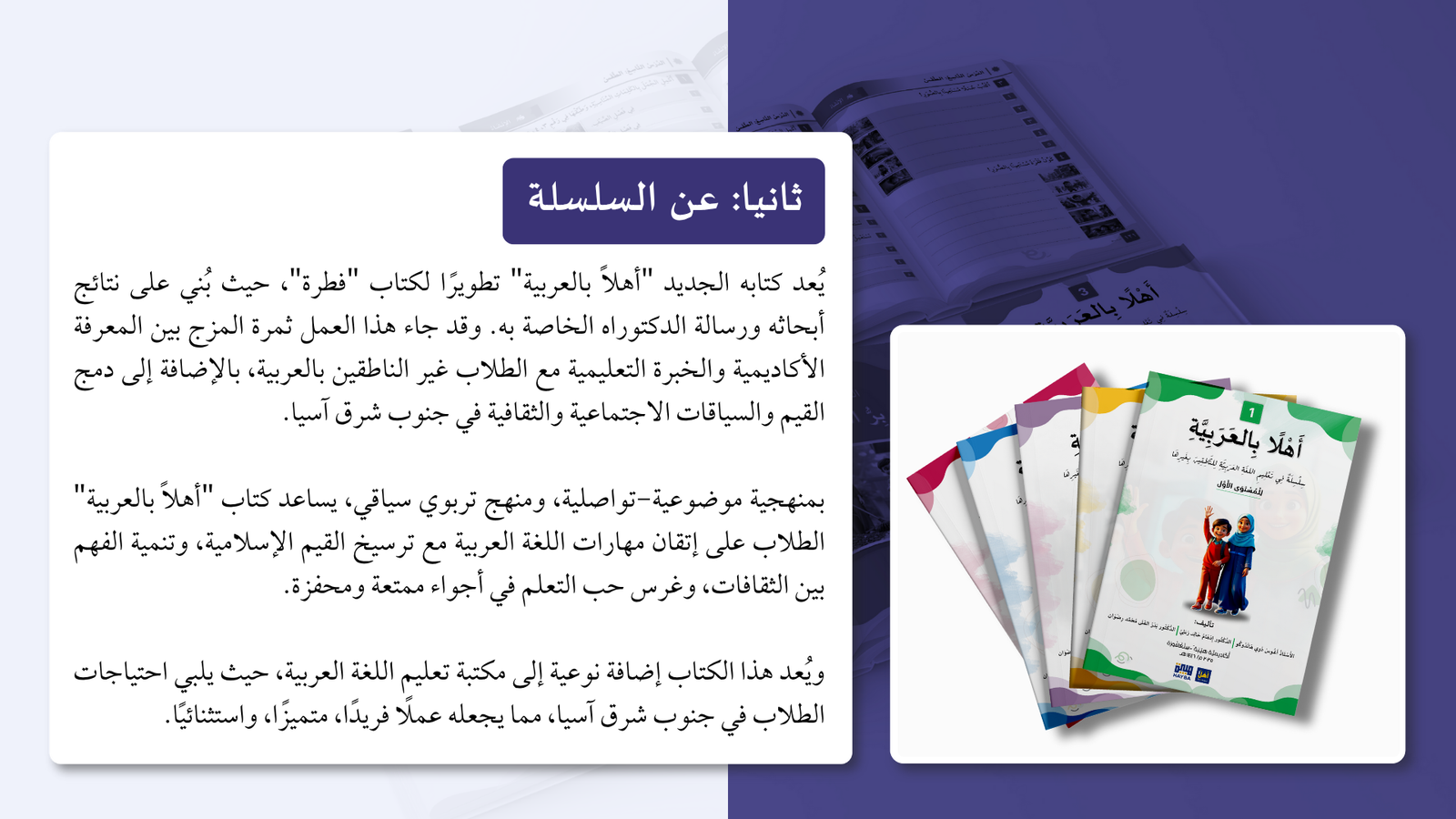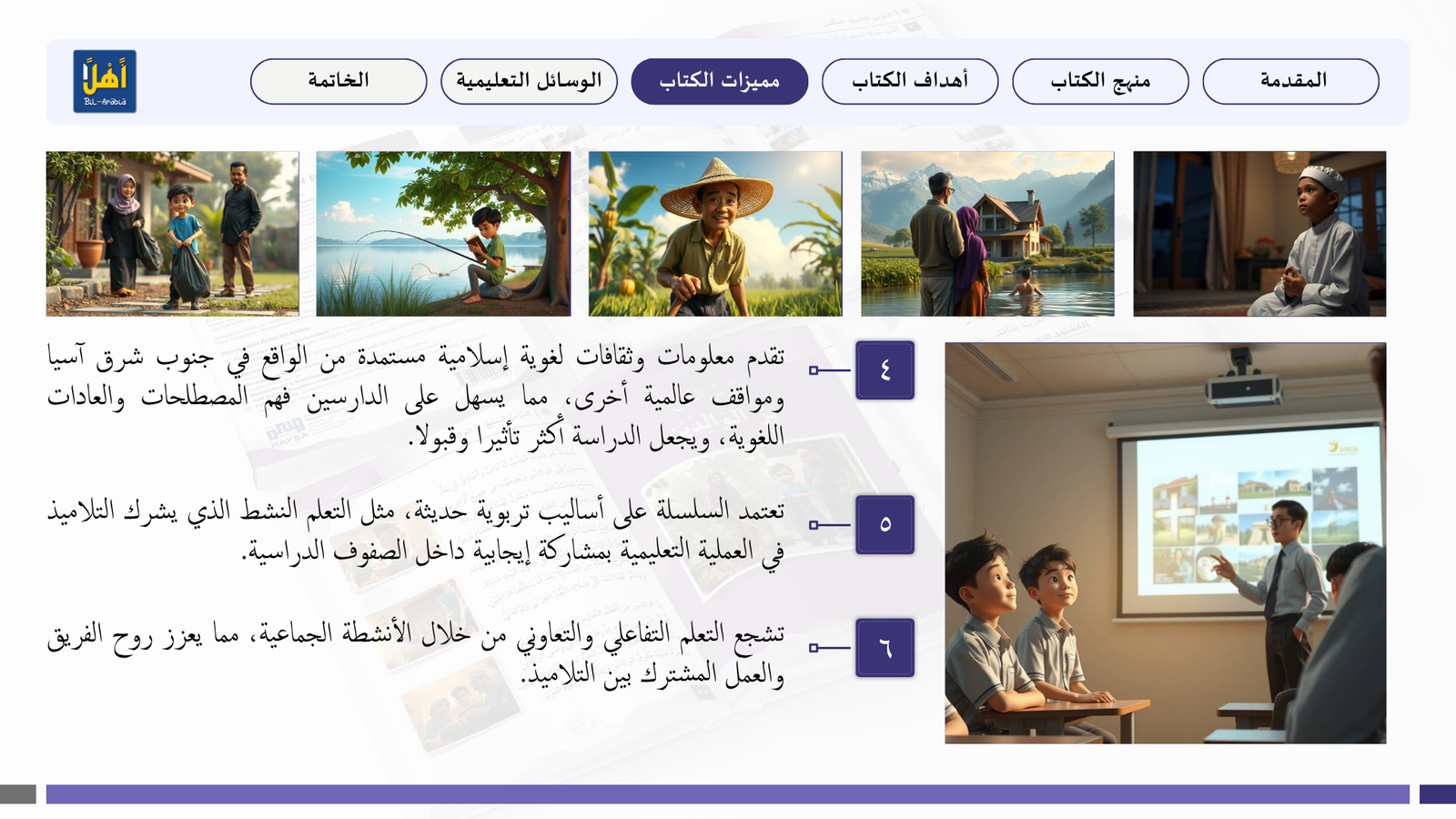 التعريف بمنهج سلسلة ” أهلا بالعربية”، وأهدافا، ومميزاتها، ووسائلها التعليمية مفصلا